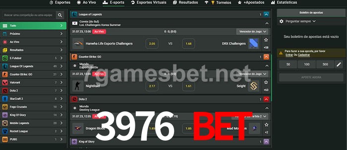 O 3976 Bet oferece uma grande seleção de opções de apostas em e-sports com probabilidades competitivas